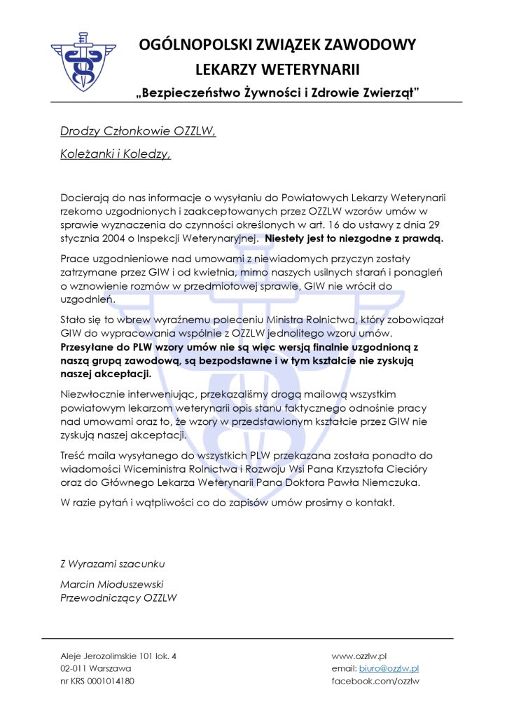 Przedstawiamy komunikat w sprawie rozsyłanych wzorów umów na czynności z wyznaczenia ULW. Zachęcamy do zapoznania się z jego treścią. W razie pytań i wątpliwości co do treści umów prosimy o kontakt.